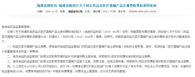 下面是福建省物价局、福建省财政厅关于核定药品及医疗器械产品注册费收费标准的复函: